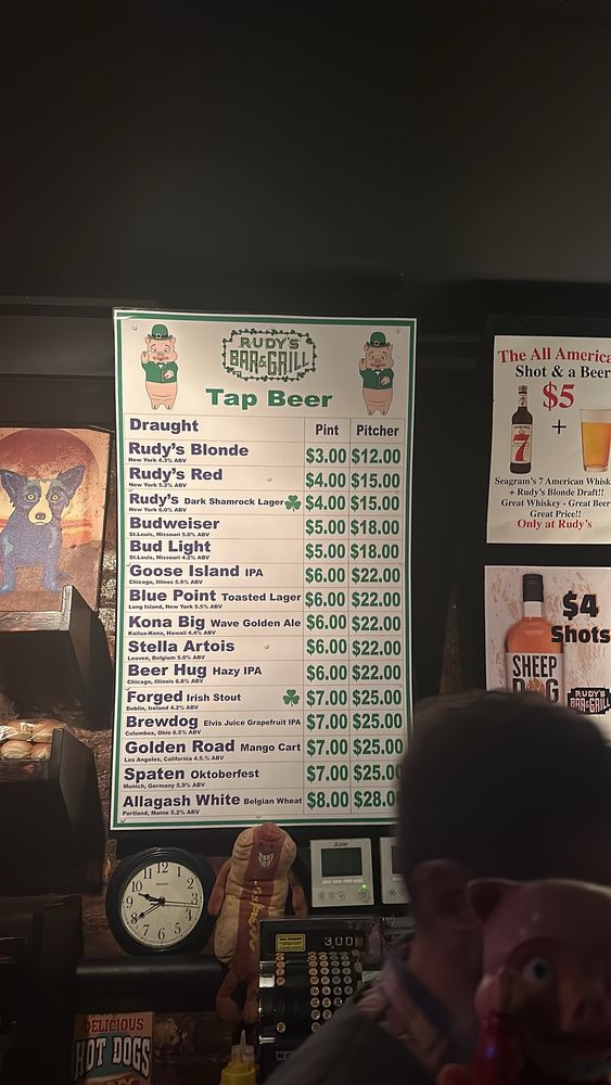 Introducing Rudy's Bar & Grill, a hotspot in NYC known for its electric atmosphere, free hot dogs, and affordable drinks. Located on 9th Ave, this dive bar offers a unique experience with friendly staff, including standout bartender Keith. The menu features $4 pints, coke, and their famous hot dogs. Customers rave about the great vibe, good music, and engaging bartenders. Rudy's is praised for its diverse offerings, from happy hour specials to pool tables, catering to everyone's tastes. The combination of a lively ambiance, excellent service, and wallet-friendly prices make Rudy's a must-visit spot, perfect for groups, late nights, and even kids. Whether you're a local or a tourist, Rudy's promises an unforgettable New York experience. Don't forget your cash for this cash-only gem!